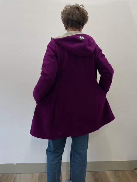 Der Walkmantel Fellhorn ist weniger tailliert als der Mantel Grünten. Er ist etwas lockerer geschnitten. Daher sind auch Brust-und Taillenmaß sowie die Armlöcher erweitert.
